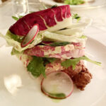 To refresh the palate, there’s icy melon granita with goat milk yogurt gelato that together taste like a 50-50 bar.