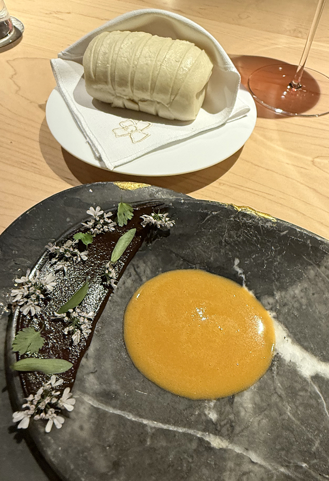 Not surprisingly, this is experience is a major splurge. Every guest is required to choose a beverage pairing with their tasting menu. So, the per-person total tab with food and drink, exclusive of gratuity, is $745 with the non-alcoholic pairing, $820 with the classic wine pairing, $1,010 with the high-end wine pairing, $785 with the hybrid pairing of non-alcoholic and wines, or $1,595 with the premium wine pairing.