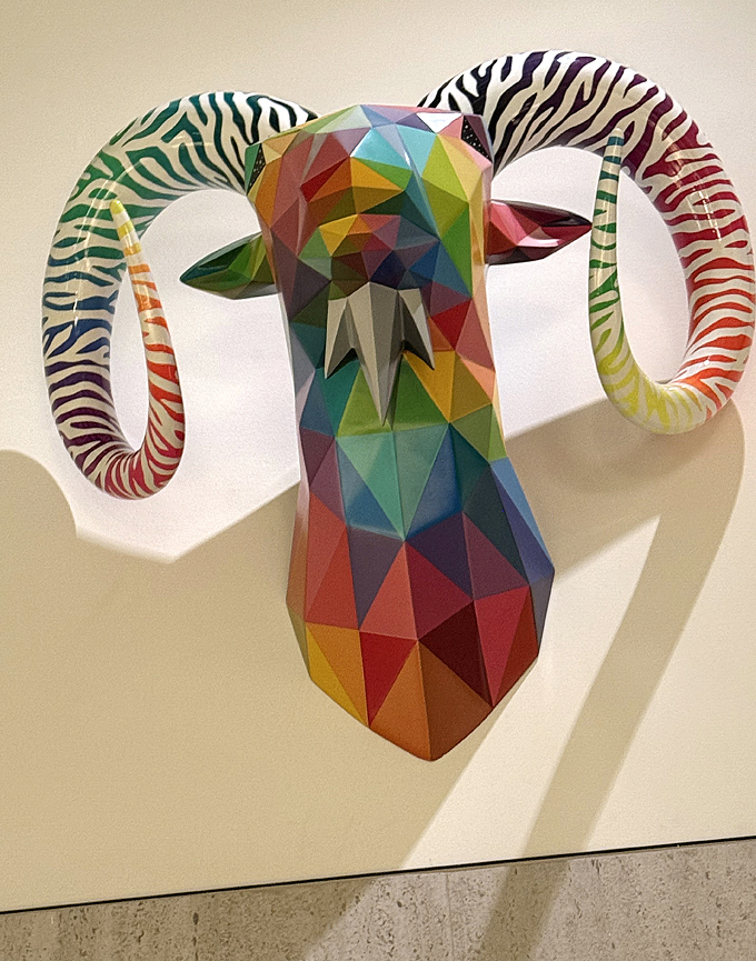 The evening begins in the courtyard. It sets the elegant yet mischievous mood for what’s to follow with its candlelight ambience, towering maple trees, suspended silvery mesh clouds, and playful, lighted giraffe sculpture.