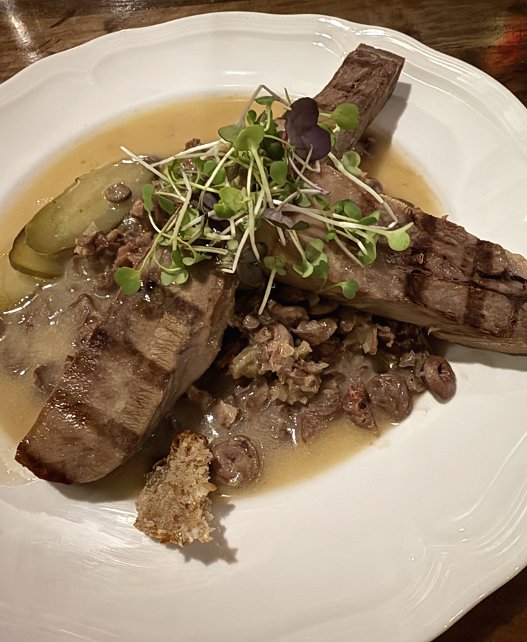 When you order the sutter stroganoff ($32), as I did, the server will ask if you realize it’s made with offal, as some patrons in the past have panicked upon receiving their plate. That’s because this is not the usual stroganoff that typically comes to mind, made with beef and mushrooms in a creamy gravy served over egg noodles or mashed potatoes.
