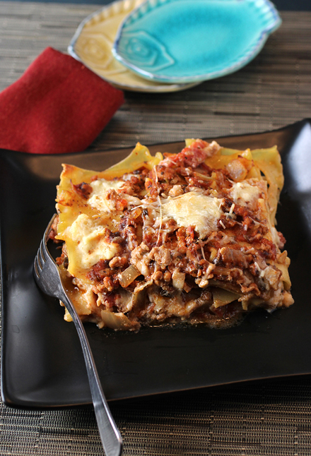 The ragu is hearty with ground beef, mushrooms, onions, and a lot of celery.