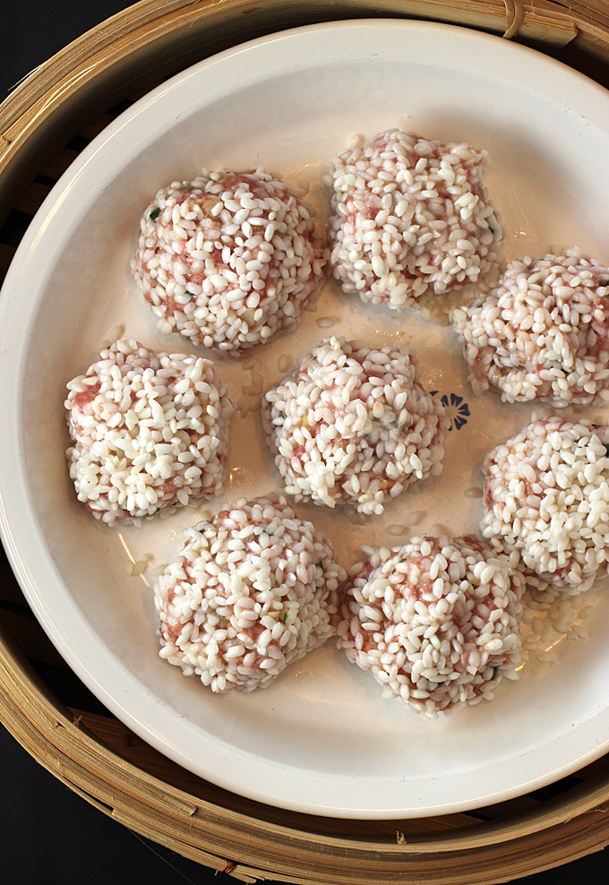 Drain the rice. Form the meat into balls, then roll each one in the rice. You’ll end up with about 16 of them.