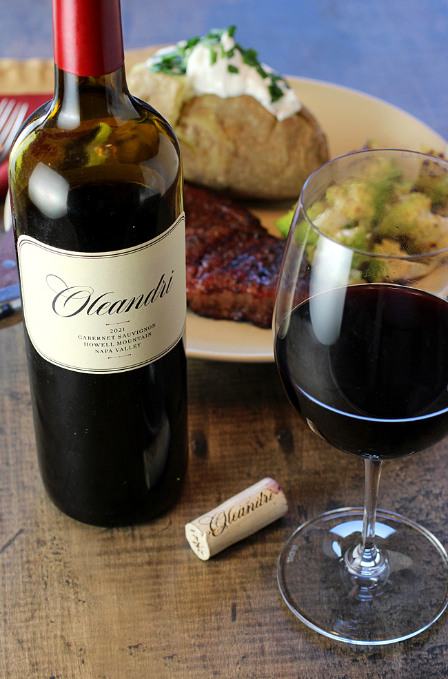 When my husband, aka Meat Boy, was jonesing for a juicy, grilled, dry-aged steak with baked potato heaped with sour cream, I had a hunch that a bottle of 2021 Oleandri Cabernet Sauvignon Howell Mountain Napa Valley would be fabulous with it.