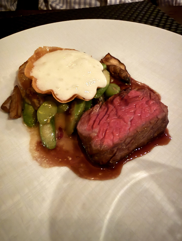 For his main, there was Akaushi eye of the rib, a particular breed of Wagyu that apparently has higher concentrations of beneficial fatty acids compared to other ones. All I know is that it tasted plenty tender, juicy, and rich, as well as extra savory from house-made miso that takes more than a year to ferment. Spring asparagus, porcini, and fava beans rounded out the plate, along with a tart shell brimming with more of that airy smoked potato mousseline.