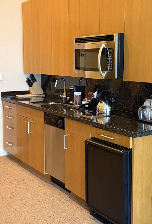 We toted them back to our hotel room, which was so spacious that it even had a kitchenette.