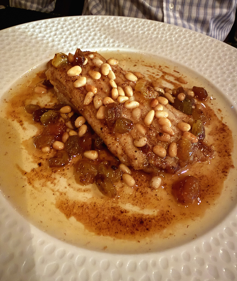 That was followed by a Gloucester skate wing sauteed in brown butter for my husband. Pine nuts added a nice little crunch, while golden raisins offered up a wine-y note.