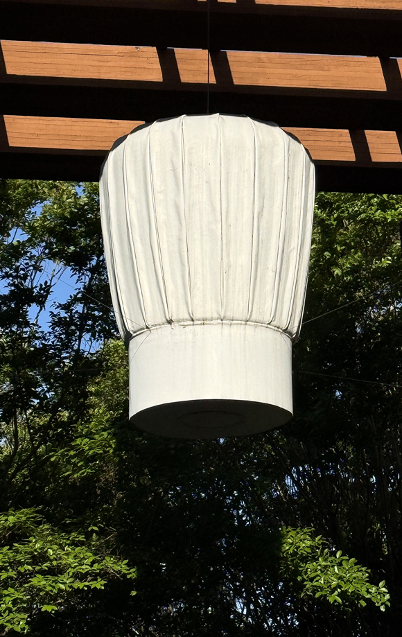 You can’t miss the entrance to it, either, as it’s marked by the ginormous chef’s toque hanging outside.