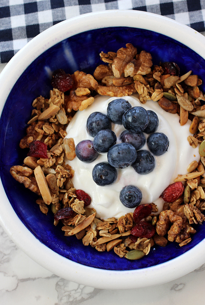 The granola keeps well for several weeks stored at room temperature in an airtight container.