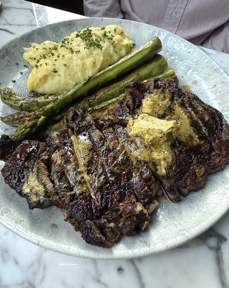 I have to say I love the way they have paid homage to the building’s past. The 160-seat dining room has soaring ceilings with exposed ductwork, giving it the industrial feel like that of a printing press.