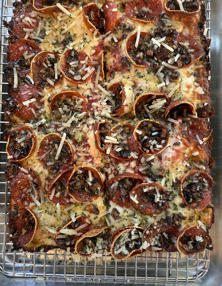 The name may be a bit of misnomer — as the pizzas are baked in deep rectangular pans, not square ones — but the results are incredibly crisp perimeters and corners with the lacy, baked-on cheese we all fight over.