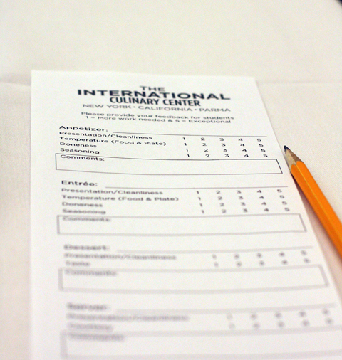 When you are seated, you’ll get a pencil and questionnaire, as well as a printed menu. There’s always a choice of entrees, at least one of which is vegetarian. Depending upon how many students are working that night, you might also get a choice of appetizers and desserts.
