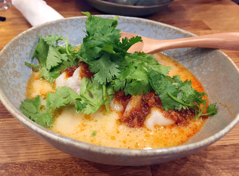 A few weeks ago, I was fortunate to enjoy all of that when my husband and I waltzed into one of the Bay Area’s hottest new ramen joints just before 5 p.m. to enjoy an early dinner, which we paid our tab for at the end. Normally, there would be a line out the door. But we managed to beat the crowd. And this place can fill up fast because it’s not very big. A nice touch are the black boxes underneath the table to stow a purse or backpack so you don’t have to just drop them on the bare floor.