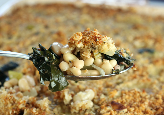 Bruce Aidells Part II: Escarole and White Bean Gratin