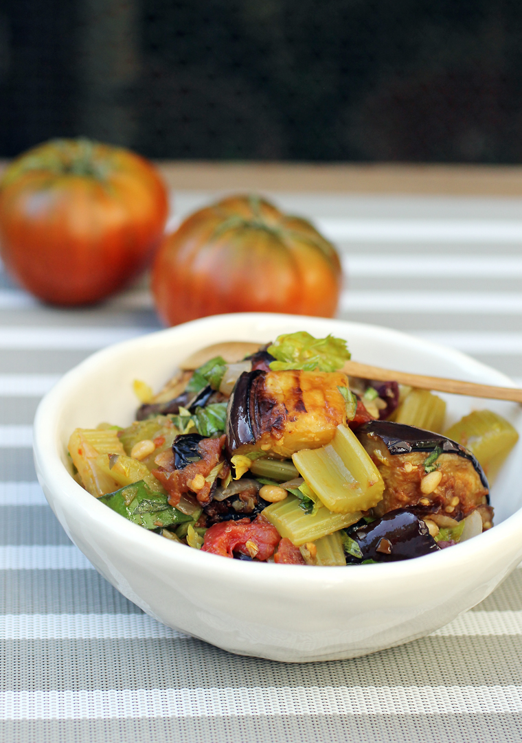 Eggplant, tomatoes, olives, pine nuts and a whole lot of love.