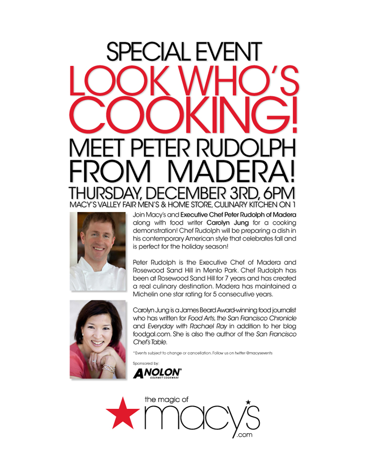 Join the Food Gal and Chef Peter Rudolph of Madera Restaurant For A Macy’s Cooking Demo