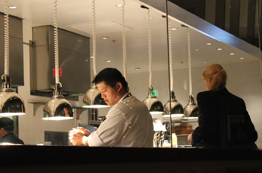 Executive Chef Yu Min Lin expedites at the glass-fronted open kitchen.